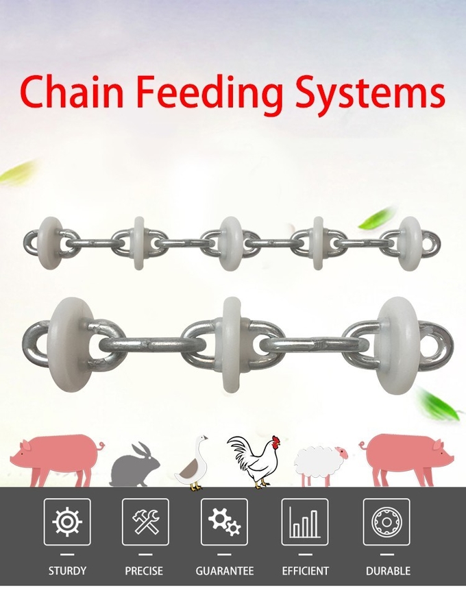 Livestcok farm automatic chain disc feeding line is made of carbon steel, it is cold shrinkage resistance, oxidation resistance, and fracture resistance, the length can be cut according to customer requirements. The disc is made of nylon material by injection molding, it's anti-rust and antimagnetism, with high tensile strength, durable.