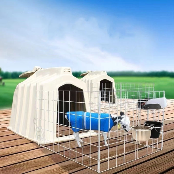 Cattle farm equipment PE calf housing hutch is used to separate and raise the 0 - 3 months calves, help them in avoiding sucking between each other, creating and improving their living environment, and increasing the growth speed.