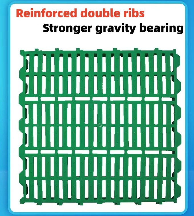 Pure PP material is used for producing animal farming plastic slatted floor, insures high strength