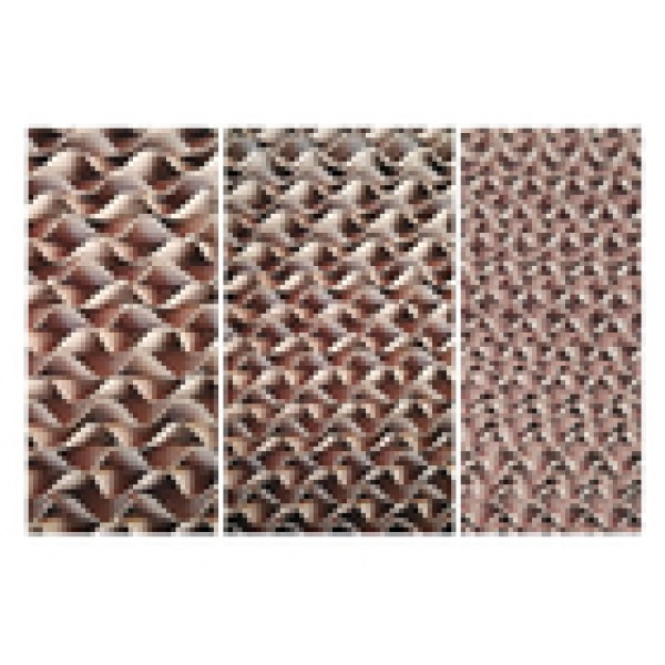 Our water evaporative cooling pad for poultry pig farm greenhouse has one layer of thin water film on the surface of corrugated fiber paper. When the outside hot air pass through the paper, water on the thin film absorb heat in the air and then evaporate into vapor, and the cool air can enter the room. It is a good use of the principle of water evaporation temperature decreases.