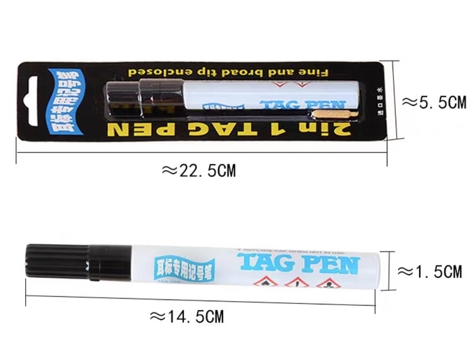Livestock ID Tags Animal Ear Tags Black Ink Marker is specially used to write on TPU ear tags, such as sheep, goat, pig, cattle, cow and other animals' ear tag. You can write any content to mark animals, the ink can dries very fast and does no fade.