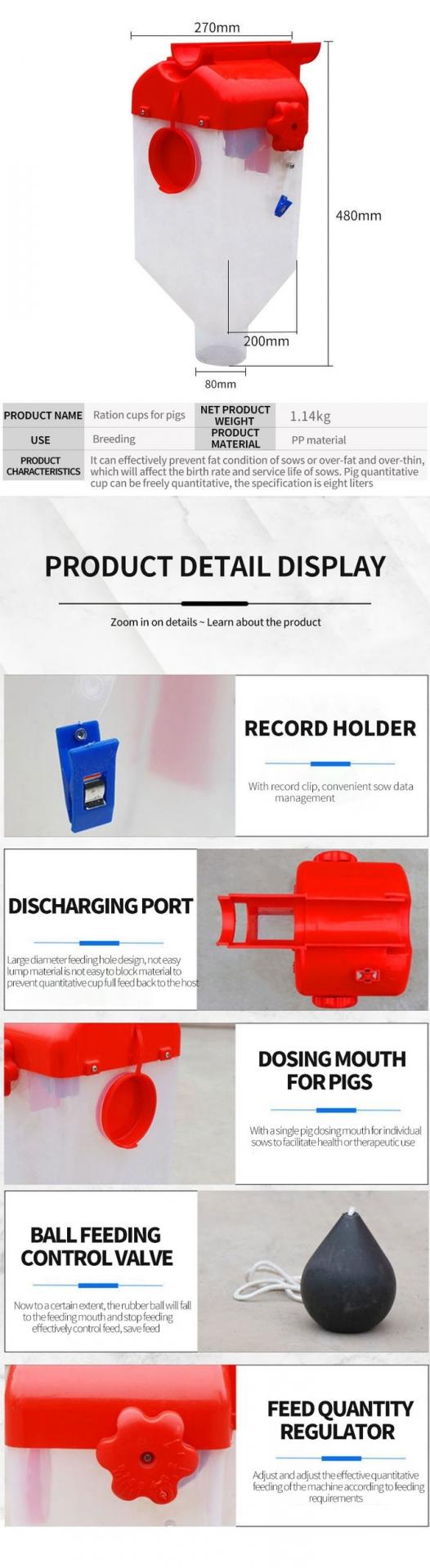 Pig husbandry equipment automatic feeding system dispenser is made of 100% food grade pure PP material, non-toxic and odorless, strong and durable. One time injection molding makes sure smooth inner w