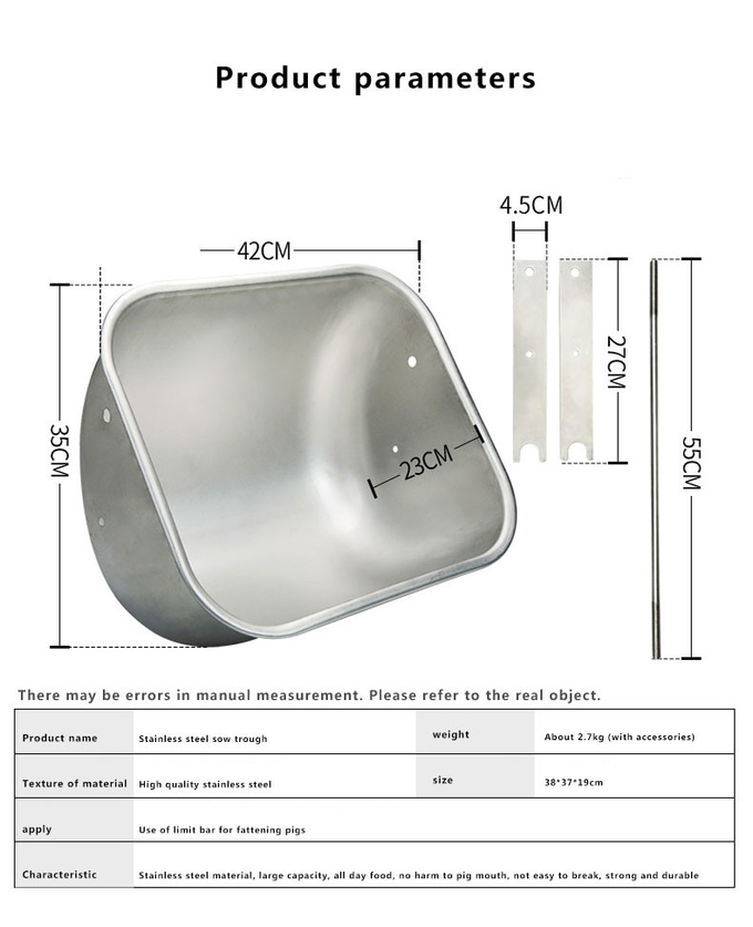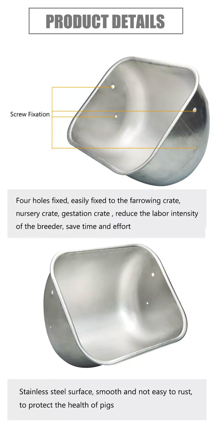 Livestock feeding equipment pig farm SUS 304 sow feed trough is suitable for farrowing sow and gestation sow. Stainless steel seamless welding technique, which is rust-resistance, and the installation angle can be adjusted to facilitate sow feeding. Special design of folding edge makes sure smooth edge, totally smooth and no hurt to sow's mouth during eating.