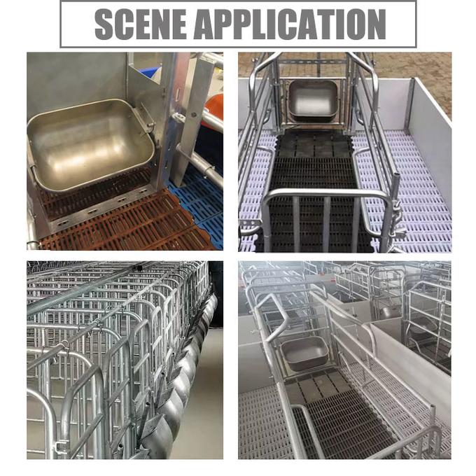 Animal Farming SUS 304 sow feed trough is suitable for farrowing sow and gestation sow. Stainless steel seamless welding technique, which is rust-resistance, and the installation angle can be adjusted