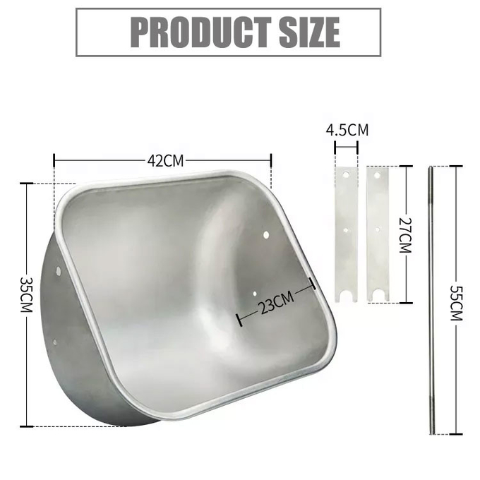 Animal Farming SUS 304 sow feed trough is suitable for farrowing sow and gestation sow. Stainless steel seamless welding technique, which is rust-resistance, and the installation angle can be adjusted to facilitate sow feeding. Special design of folding edge, 360 degree grinding, makes sure smooth edge, totally smooth and no harm to pig's mouth during eating.