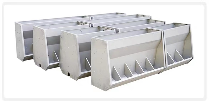 Animal farming equipment pig feeder is made of stainless steel material, it is strong and durable, anti-rust, anti-corrosion, it can serve long time. Special design of folding edge, 360 degree grinding, makes sure smooth edge, totally smooth and no harm to pig's mouth during eating.