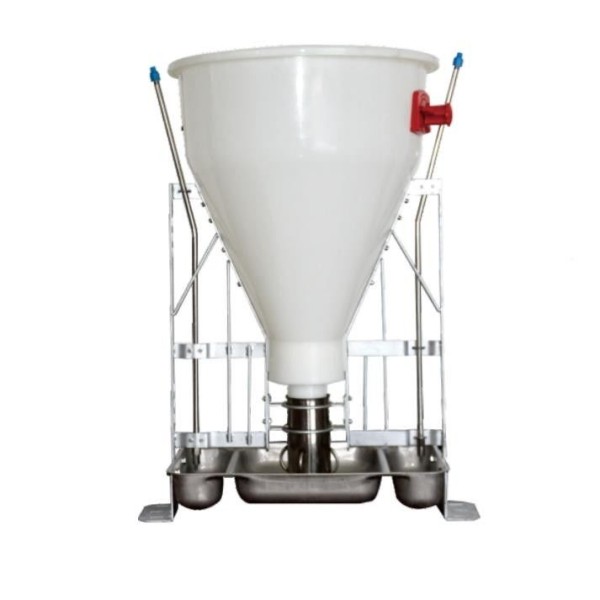 Automatic feeding equipment nursery plastic pig feed trough is suitable for nursery pigs, fattening pigs and gilt, etc. , multiple pigs can eat at same time, increase feeding effeciency. The precise regulator can adjust feed dropping amount according to pigs' requirement to ensure feed is always fresh and not wasted. Plastic feeder is equipped with nipple drinker, pigs can get water while eating.