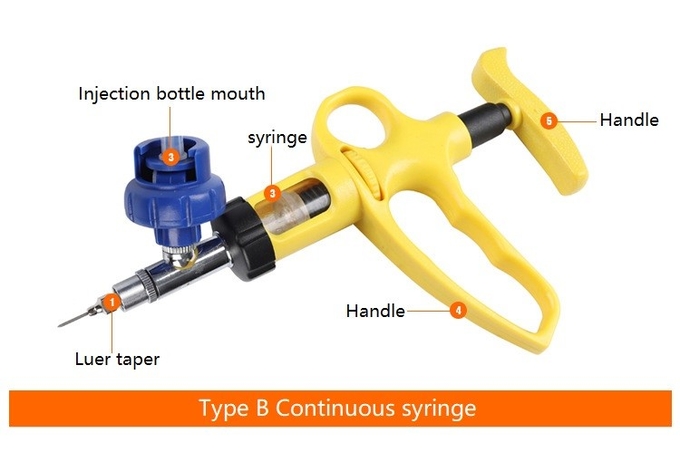 This product is a veterinary continuous syringe for animals injecting treatment. It is suit for epidemic prevention for small and big animal, poultry and other livestocks.