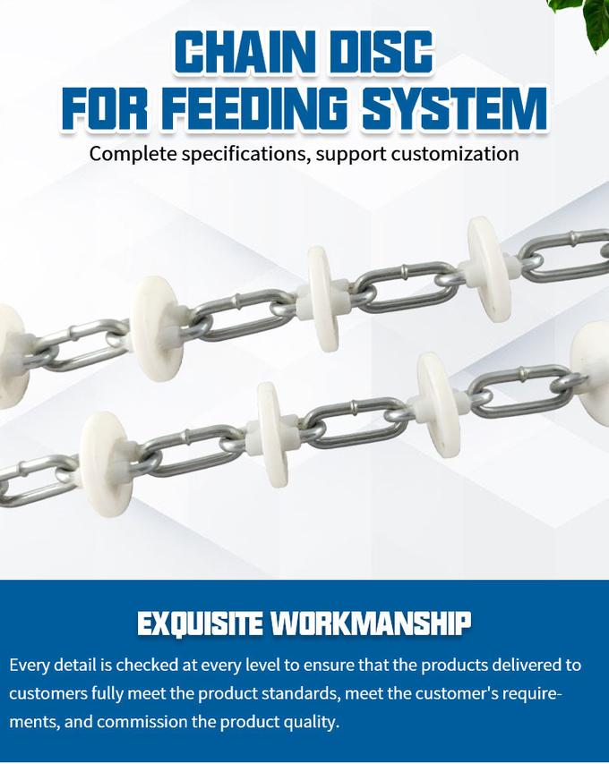 Livestock feeding equipment automatic feeding disc chain is made of carbon steel, it is cold shrinkage resistance, oxidation resistance, and fracture resistance, the length can be cut according to customer requirements. The disc is made of nylon material by injection molding, it's anti-rust and antimagnetism, with high tensile strength, durable.